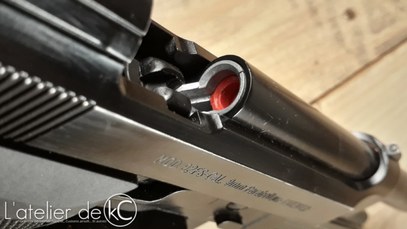 Rien à signaler coté gauche, mais sur la face droite mon montage n’était pas parfait, les marquages avaient tendance à être légèrement plus profond au fur et à mesure de la progression vers la droite. J’ai réussi à rattraper le coup à la volée sur le « PATENTED » qui du coup, parais plus fin que le reste. C’est surtout visible sur le « Parabellum » qui est un peu moins bien défini.