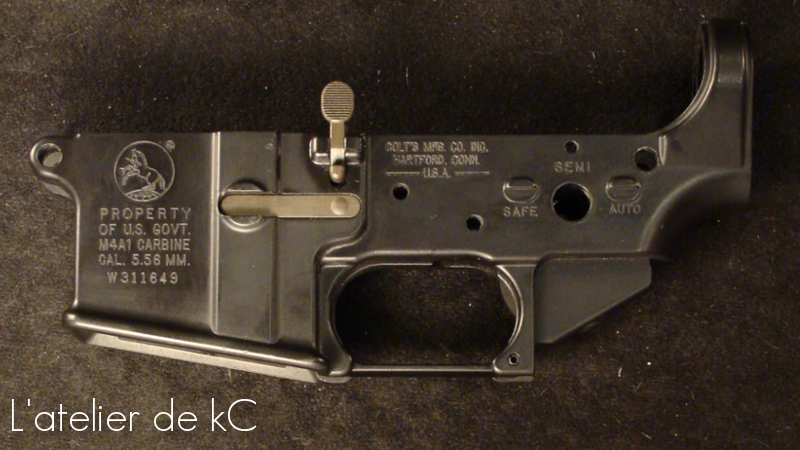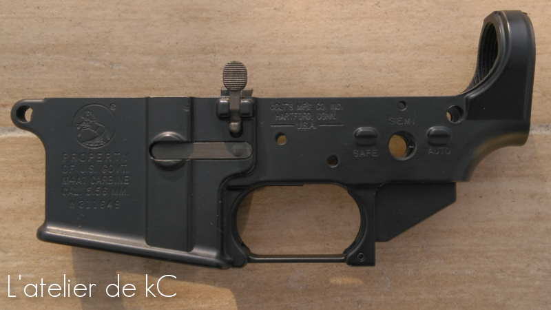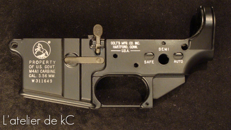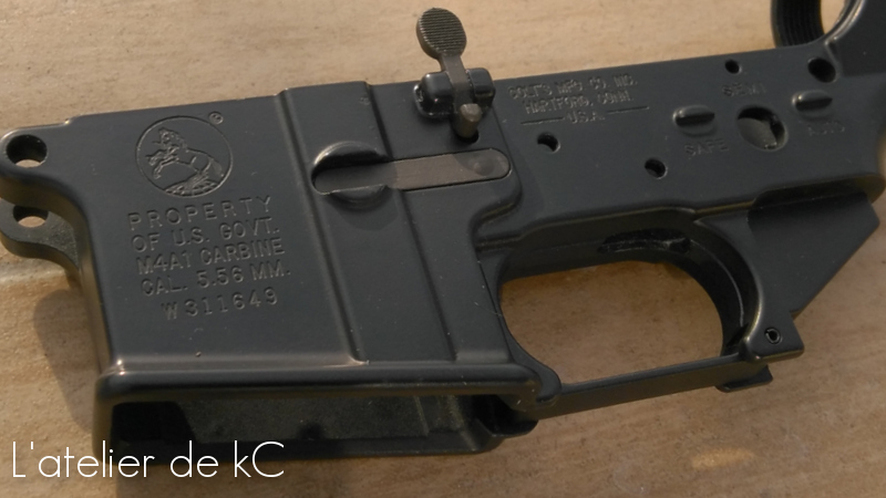 Gravures de marquages réalistes sur une M4A1 gbbr de chez GHK. Cette réplique est totalement dépourvu de marquages d’origine, y compris ceux du sélecteur de tir sur les deux faces.