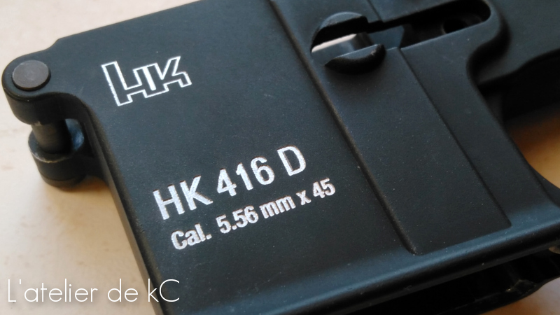 Comme toutes les répliques WE (qui ont servi de bases aux customs de PA-MAS G1S, M4 Katana, Colt 733, HK416C ), ce HK416D gbbr est dépourvu de marquages d’ origine. Tant mieux! nous allons pouvoir en faire nous même!