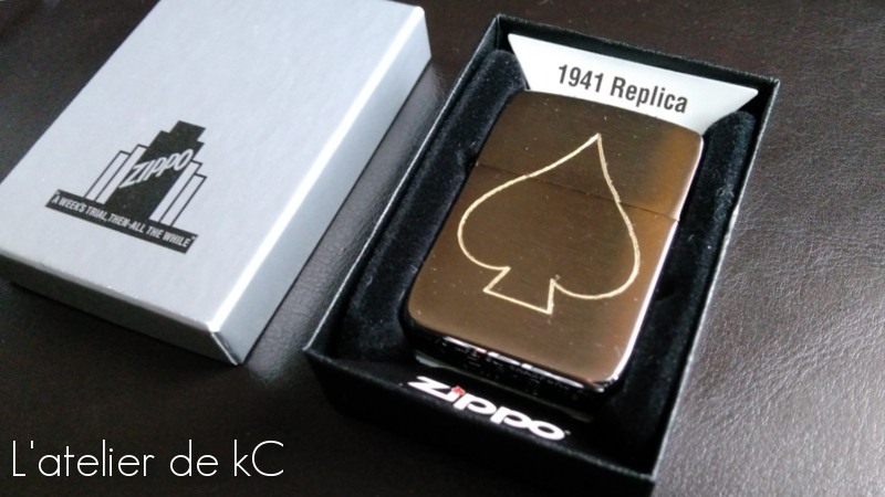 On sort un peu du monde de l’airsoft, pour attaquer une petite personnalisation d’un Zippo original « 1941 replica ». Une demande venue tout droit de Suisse, pour un cadeau d’anniversaire unique et 100% personnalisé :).
