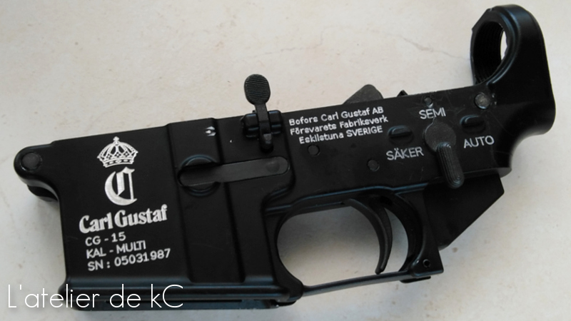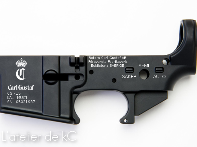 L’idée est de réaliser des marquages « semi-fantaisistes », Car inspirés de la fabrique d’arme Carl Gustaf, mais pour une hypothétique version de carabine AR-15 100% Scandinave.