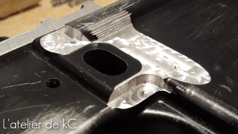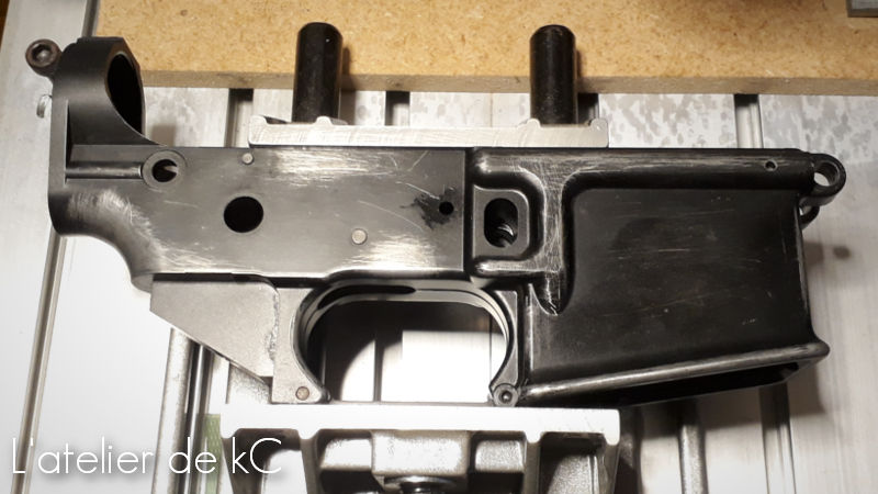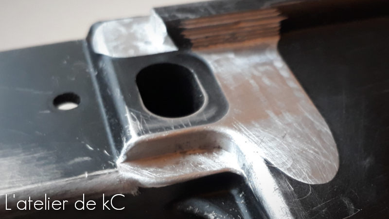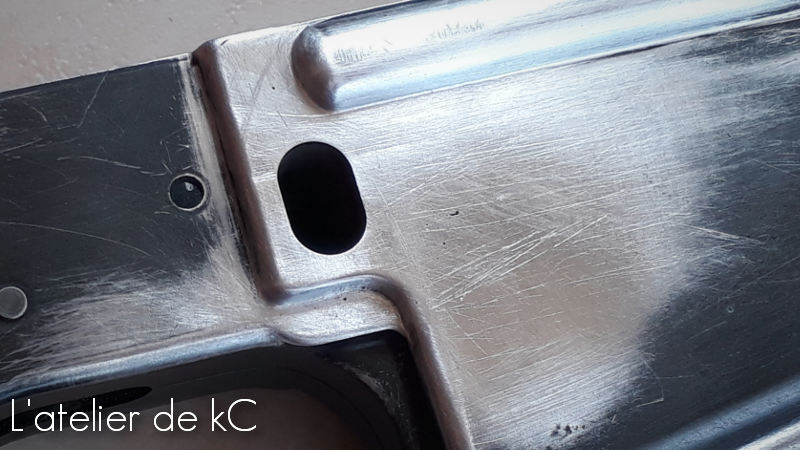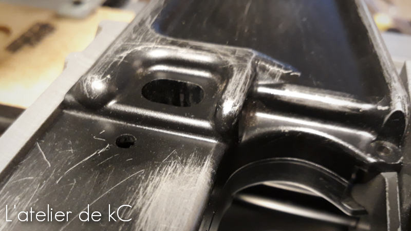 Il y a également un petit perçage à ajouter à l’ arrière du corps, qui (je suppose) à un lien avec la fixation du tube de crosse sur le vrai XM16E1.