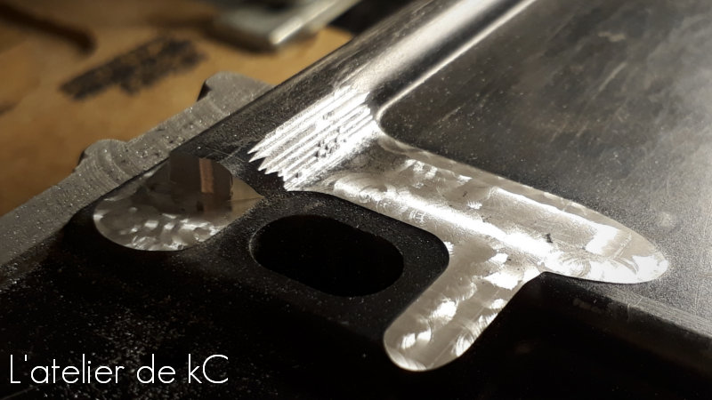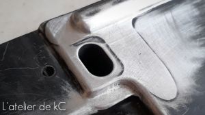 J’ affine ensuite les surépaisseurs manuellement pour uniformiser toutes les surfaces, et réalise tout les arrondis, à la lime et à la toile, pour finir par un polissage. De looongues heures de limage et de finitions !