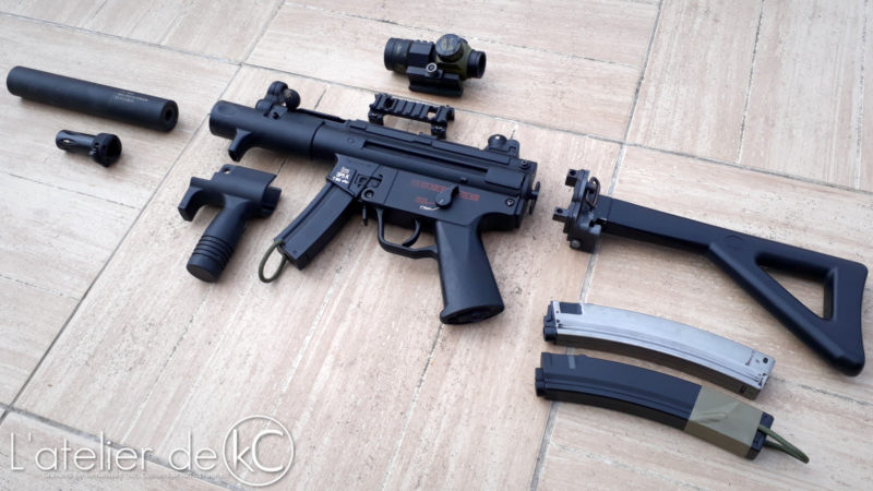 À cause de la casse qu’ elle avait subie, je ne trimballais cependant plus beaucoup cette réplique sur les terrains, jusqu’ à ce que Cyma ne sorte une version full métal du MP5 K… Que je me décide à acheter en 2011 pour redonner un coup de jeune externe à ma bonne vieille pétoire. Cela me permettra par la même occasion de jongler entre une configuration « K » et « PDW » (j’ adore pouvoir changer de config’ avec mes répliques!).