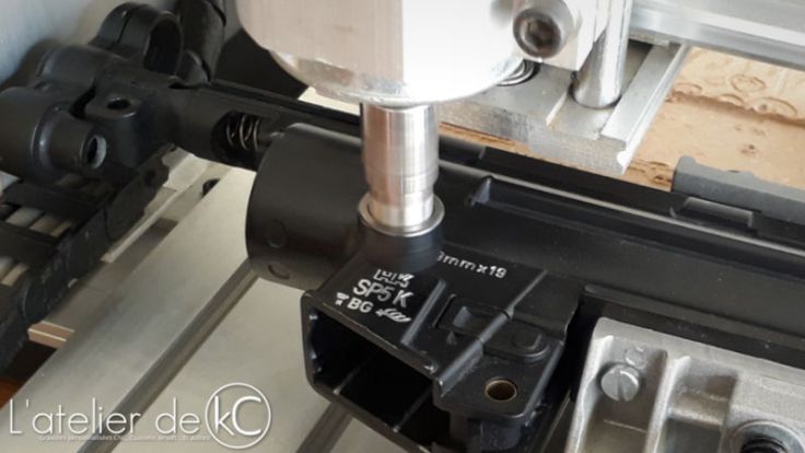 - Permettre de loger le puits de chargeur sous le plan de la table, afin réduire la hauteur globale entre la table machine et la face à usiner. J’ ai également été contraint de décaler la broche dans son support pour gagner encore en hauteur usinable.