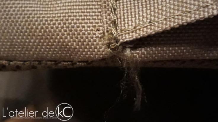 Pour un si bas prix, on pourrait s’ attendre au pire… Mais les matériaux semblent de bonne qualité (cordura 500D? avec doublure étanche) et les finitions sont plutôt honnêtes dans la globalité. Il y a bien sûr quelques fils qui dépassent et des coutures mal finies, mais rien de rédhibitoire. Un coup de briquet pour les faire fondre/ coller tout ça, et on en parle plus.