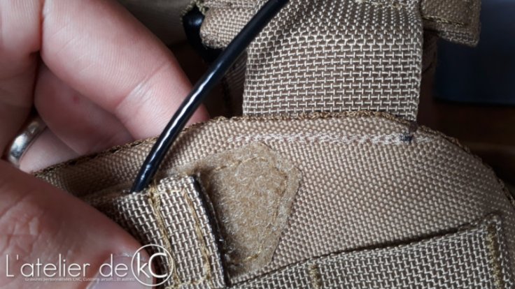 Les poches porte- chargeurs sont munies de fermetures à pression, que je ne trouve absolument pas pratique. Et vu la profondeur des poches, les chargeurs ne risquent pas de se sauver tout seul! J’ ai donc choisi de supprimer ces fermetures. Deux coups de ciseaux, un coup de briquet, terminé.