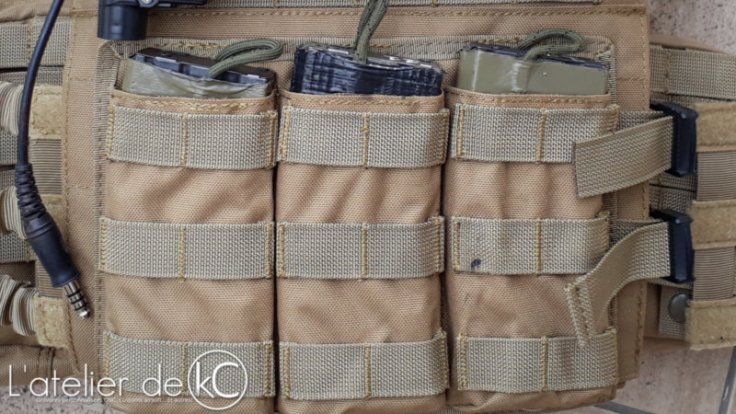 • Un porte-chargeur élastique triple, type « Blue Force Gear Ten-Speed » (Ebay, ~8€ );