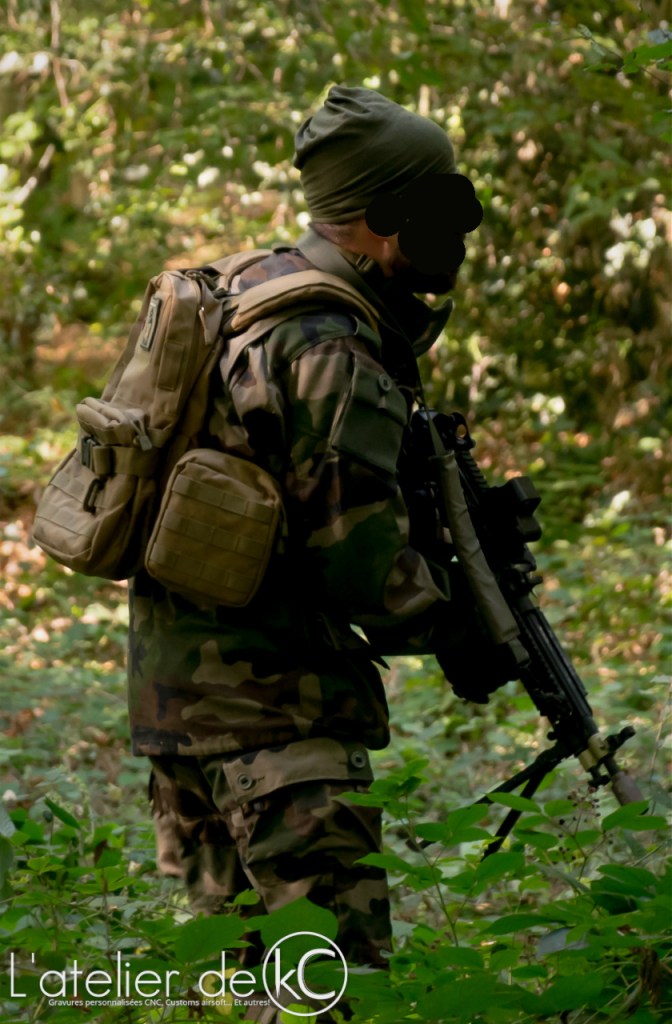 Elles valent ce qu’elles valent, mais histoire de compléter un peu l’article, voici 2 photos du plate carrier porté en jeu sur le terrain (avec ma mk46 a&k et mon ensemble Felin/ T4S2 CE):