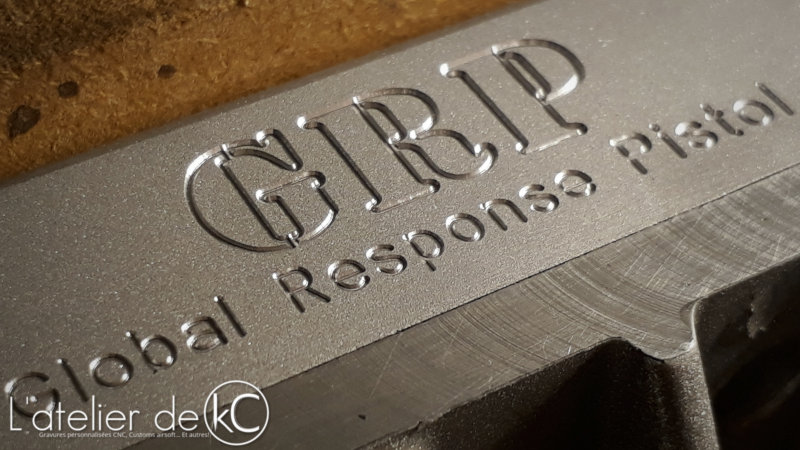 Je n’ en suis pas 100% sûr, mais pour pousser le vice, vu les reflets sur certaines photos de vrai GRP, je pense que j’ aurais même dû utiliser une fraise à bout sphérique pour réaliser les gravures de la face droite… Mais je n’ en ai pas de si petites.