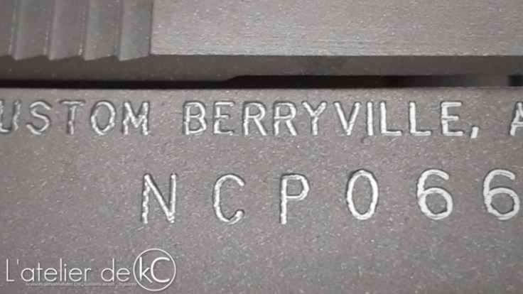Gravures relativement profondes sur la culasse ( environ 0.4mm ), à la pointe à graver de 0.1 x 60°, soit une largeur de trait théorique d’ environ 0.55mm.