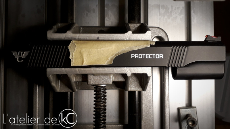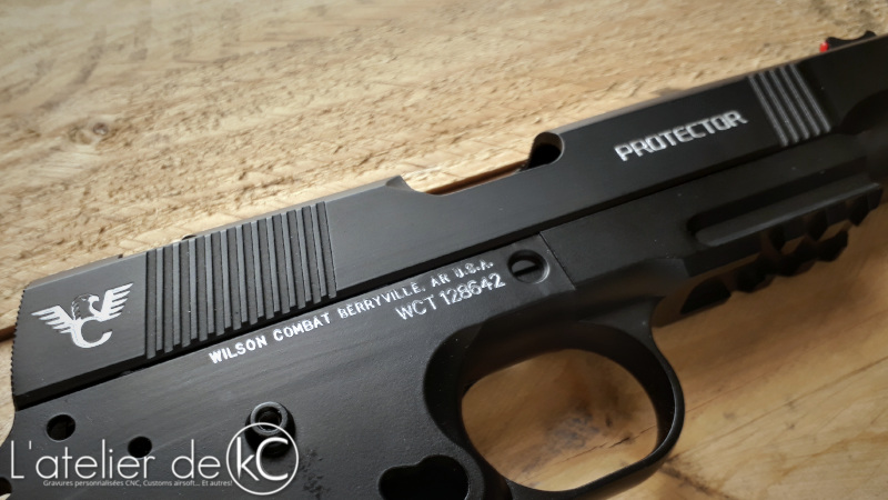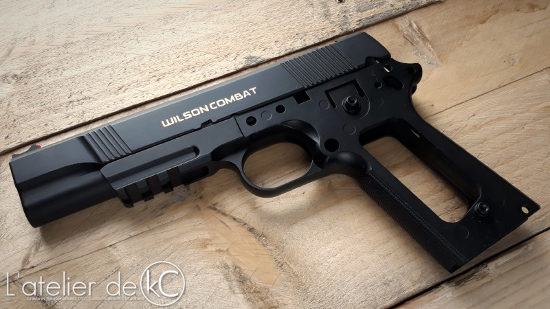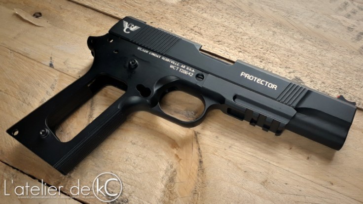Un petit 1911 « modernisé » à se mettre sous la dent! On est ici face à un modèle R25 de chez Army Armament, dépourvu de tout marquage mais répliquant le modèle réel dénommé Protector, de chez l’armurier Wilson Combat.