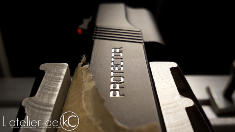 Sur la carcasse, on est sur de l’ usinage « filaire » classique, fraise de 0.3mm. Numéro de série personnalisé.