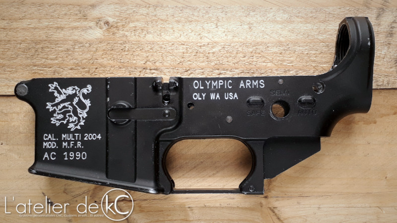 La 1ere partie du travail, et première difficulté, sera de trouver des exemples des gravures du modèle suffisamment clair, et notamment du logo Olympic arms, afin de pouvoir reproduire le tout correctement.