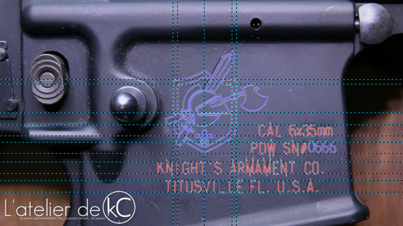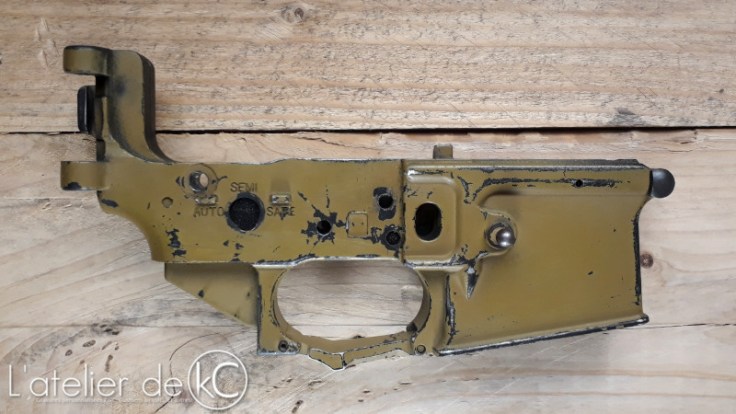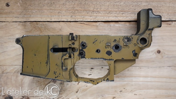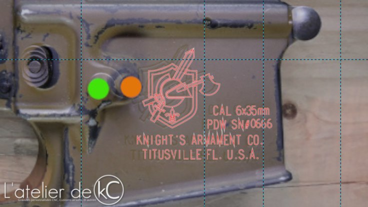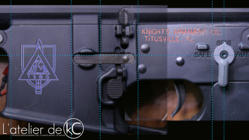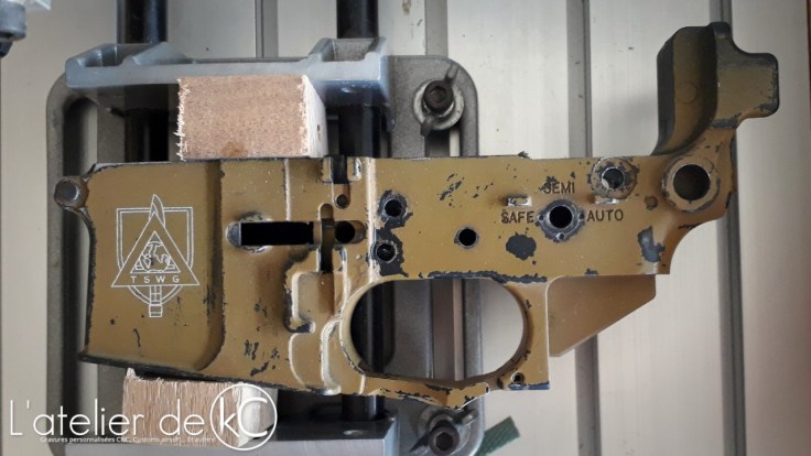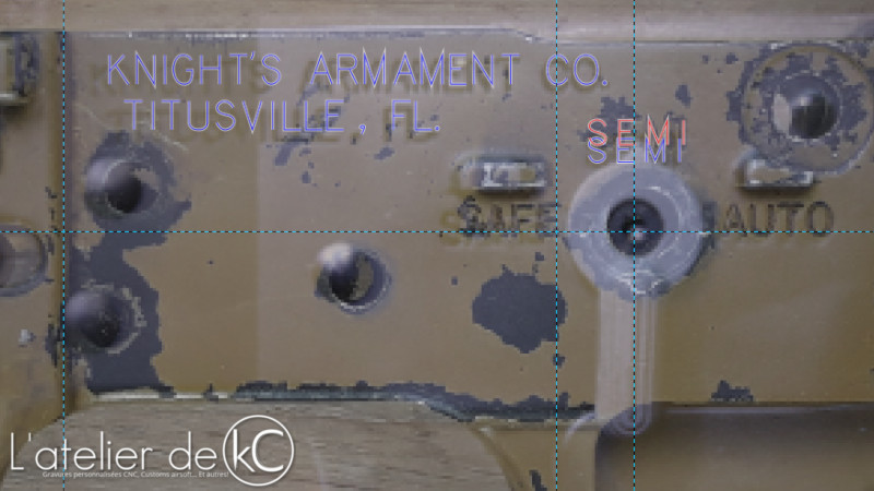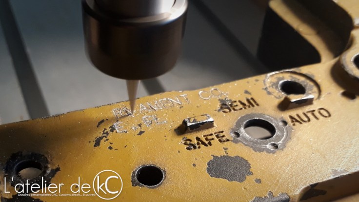 Sur le coté gauche, c’ est l’ inscription « SEMI » du sélecteur de tir qui est un peu plus gros et situé trop haut, m’ obligeant à réduire et à repositionner légèrement le texte à graver!