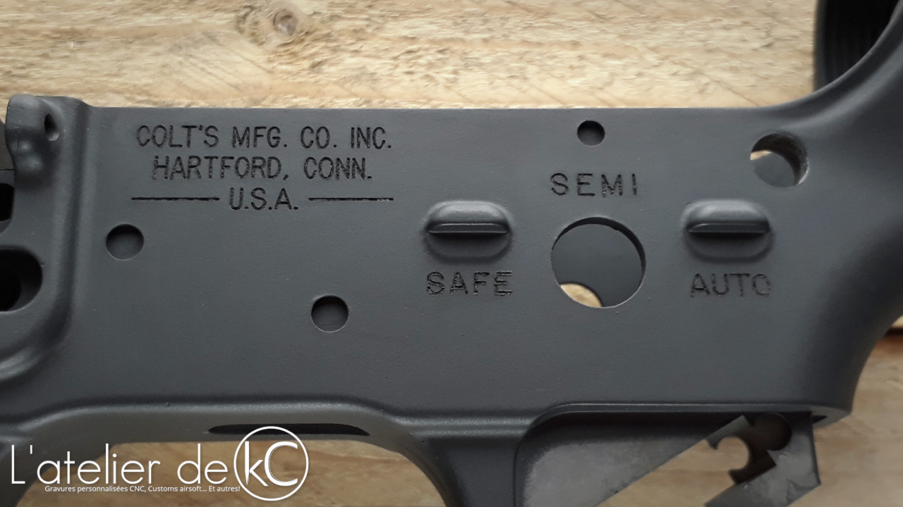 Comme vous pouvez le constater, le corps est entièrement vierge de toute inscription, y compris au niveau des deux faces du sélecteur. On va donc tout graver nous même!