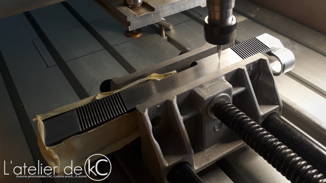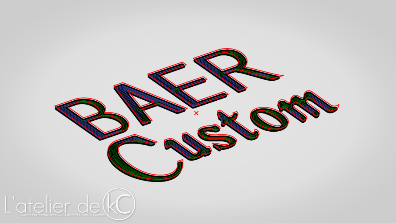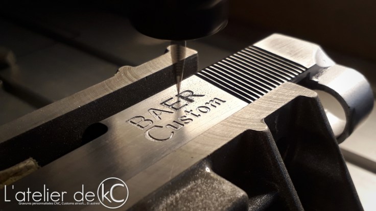 Pas de gravures filaires ici sur ce projet; pour reproduire fidèlement les marquages BAER, je réalise des usinages de poches sur 0.2mm de profondeur.