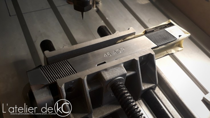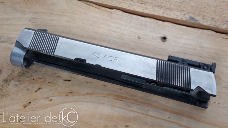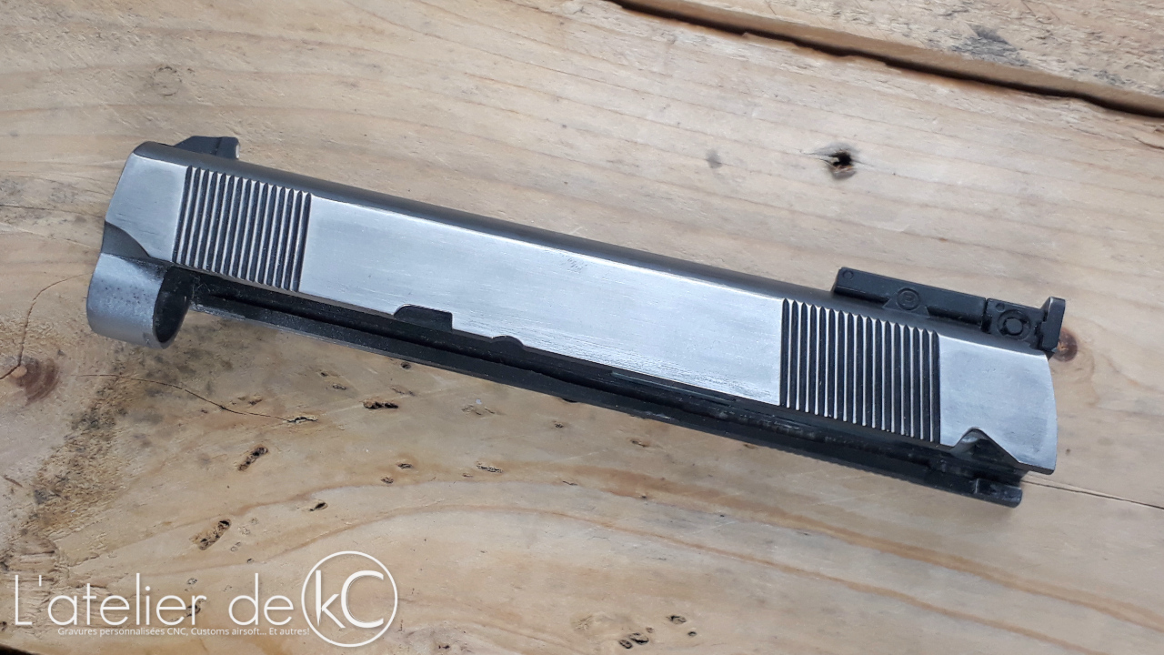 Nous partirons cette fois- ci d’ une base 1911 « officer » (3.8 pouces) de chez WE. Les flancs de la culasses ont d’ ores et déjà été poncés et brossés par son propriétaire.