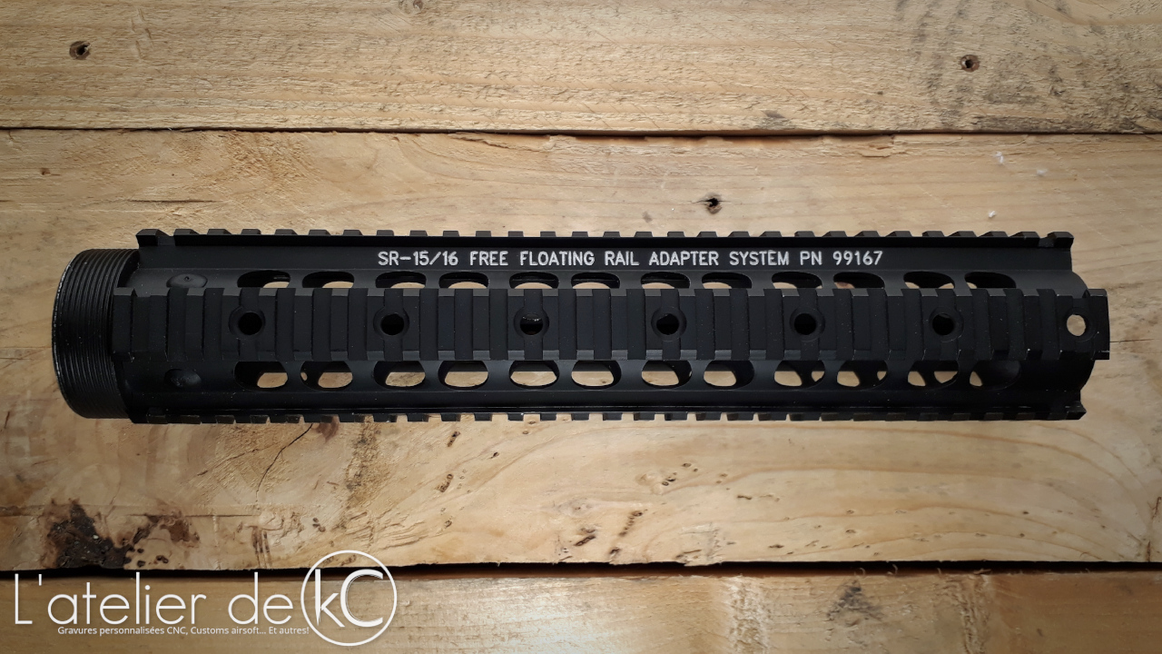 Encore un bon petit projet de « collectionneur intégriste » pour paraphraser son initiateur: réaliser des gravures authentiques sur un rail free float 12 pouces « no name » provenant de chez CWI airsoft, le tout pour un custom de mk12 mod1 sur base m4a1 Viper tech.