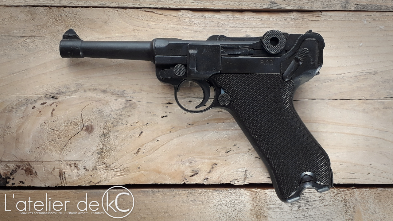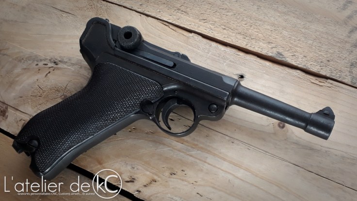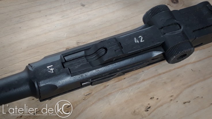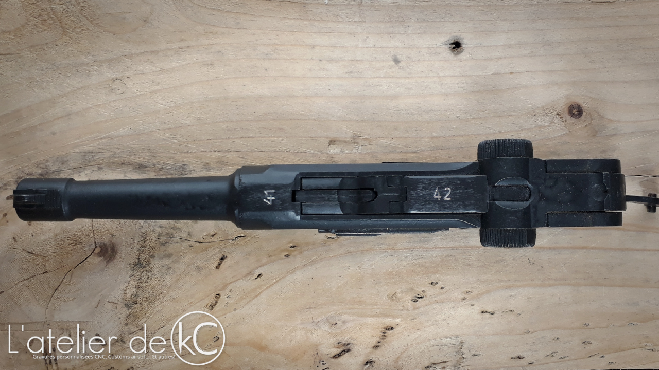 Voici un petit projet bien sympathique et qui sort de l’ ordinaire: 2 gravures apparemment simples, un 41 et un 42 sur la partie haute d’ un Model Gun Luger P08!