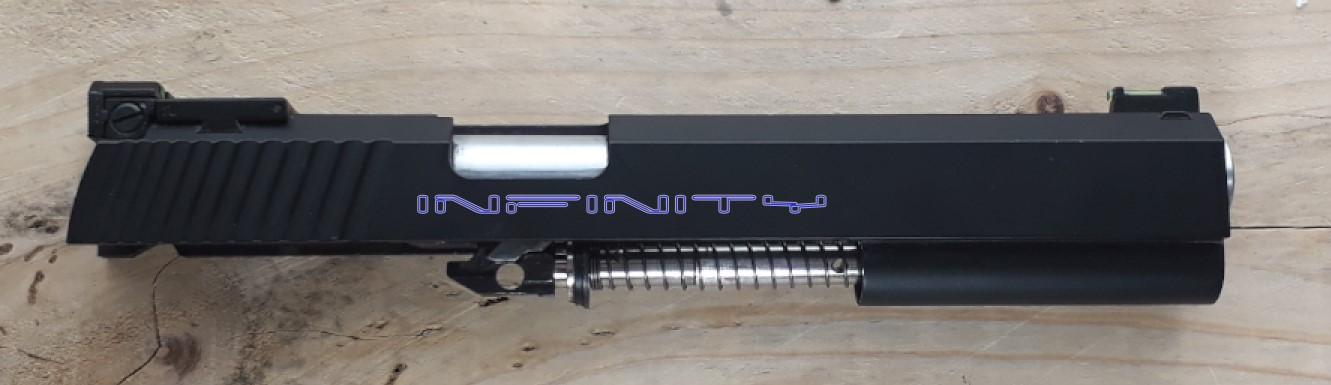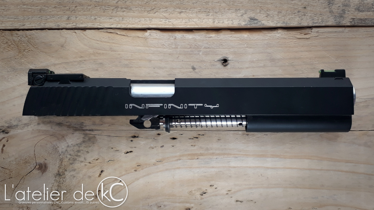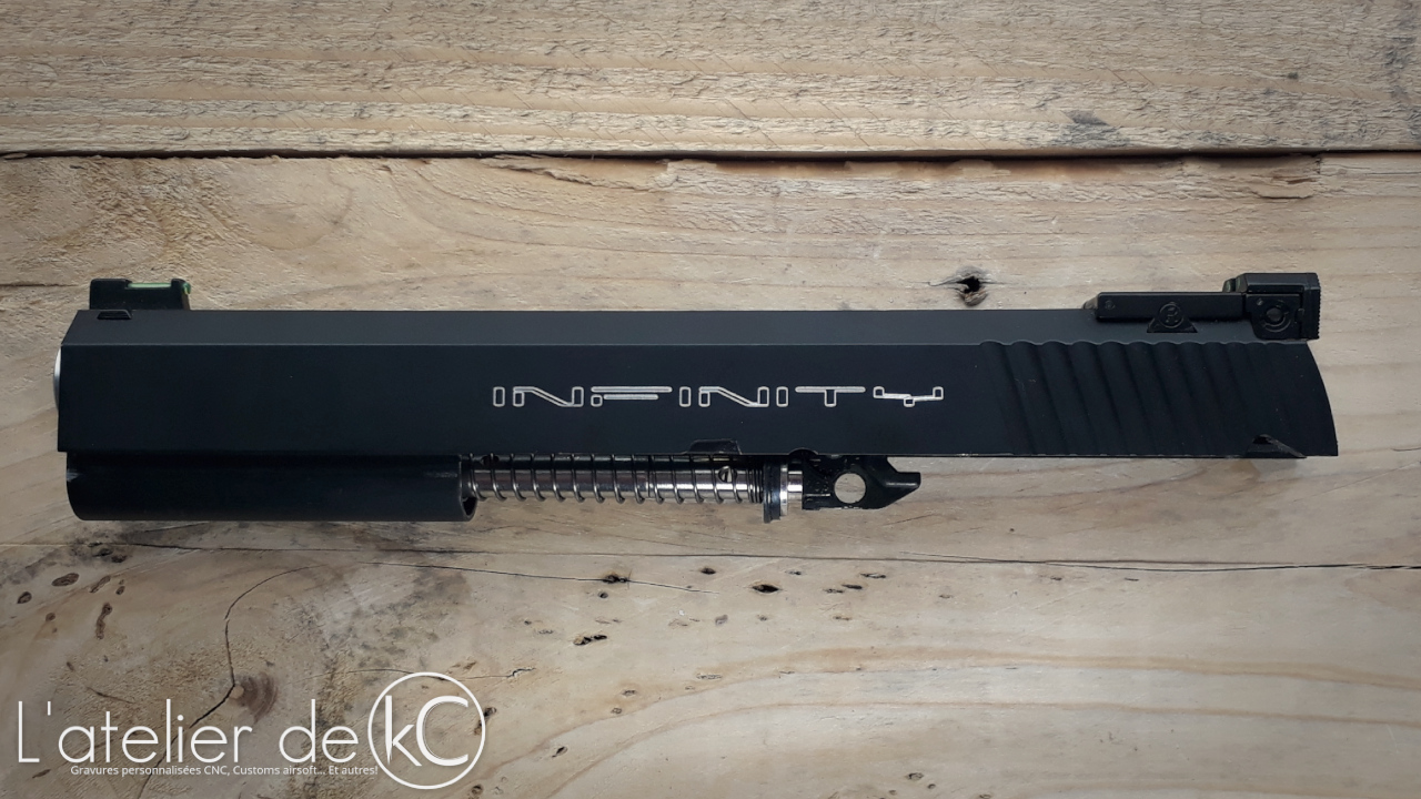 L’ objectif sera de graver « Infinity » des deux cotés de la culasse. On commence par quelques aperçus pour s’ aider dans le choix des gravures et de leurs emplacements sur cette loooongue culasse.