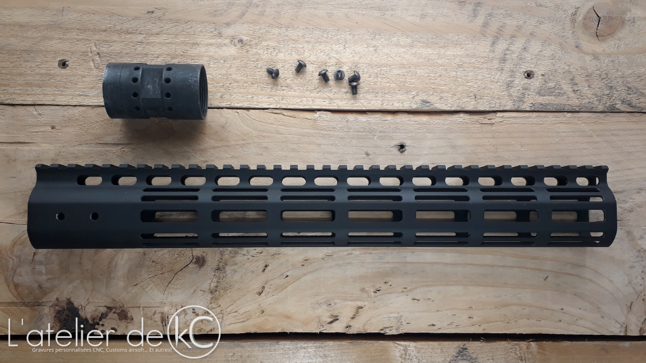 Nous avons donc ici un garde main type M-lok de 13.5 pouces de chez 5KU, inspiré du NSR de chez Noveske. Je m’ apprête donc à y apposer les marquages correspondant, mais commençons par un petit tour du propriétaire avec une mini review!