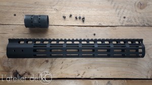 Une fois ces défauts corrigés et le tout installé, rien à redire. L’ ensemble est bien rigide et s’ aligne correctement avec le canon et le upper. Les encoches M-lok et le rail supérieur sont bien aux cotes, et les accessoires se montent sans soucis.