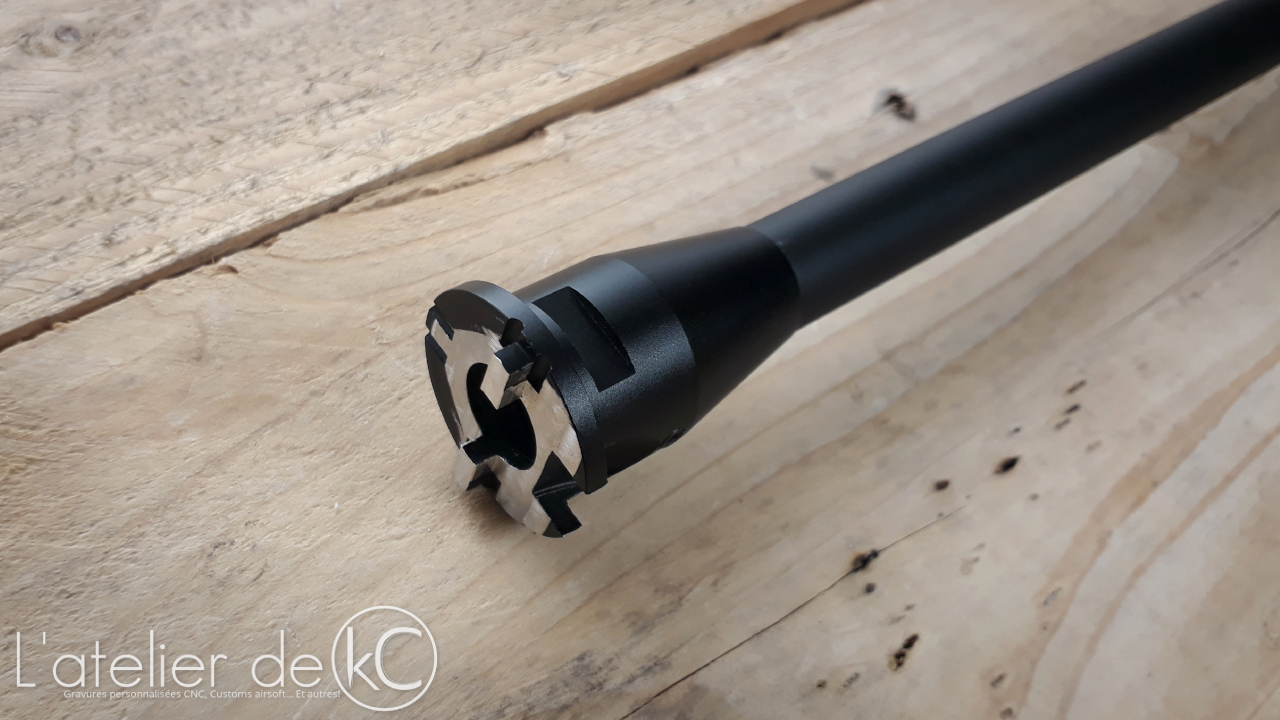 Le canon est globalement bien réalisé… à un détail près encore une fois: le filetage 14- était complètement foiré sur le premier canon reçu! Heureusement le vendeur Ebay a été compréhensif et m’ a renvoyé un deuxième canon à ses frais.