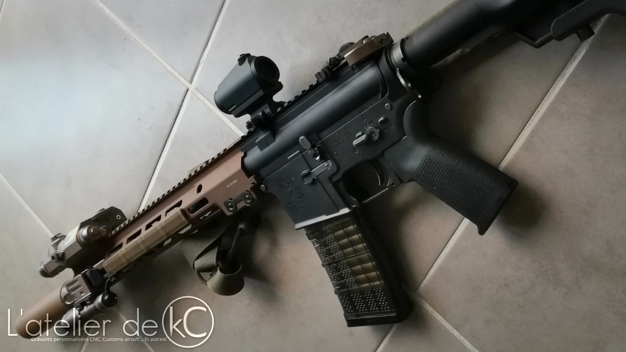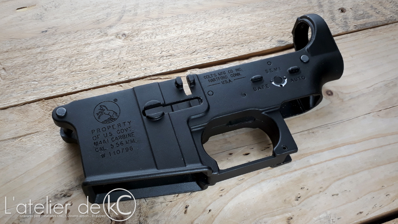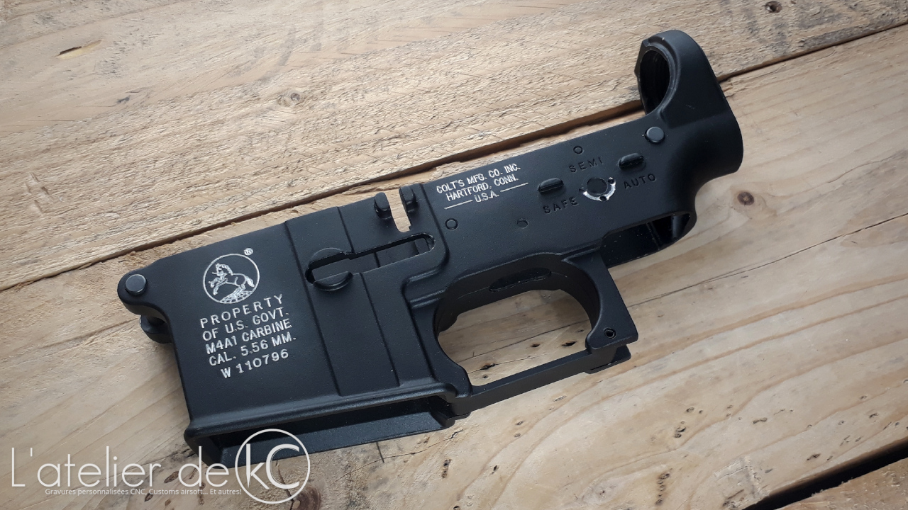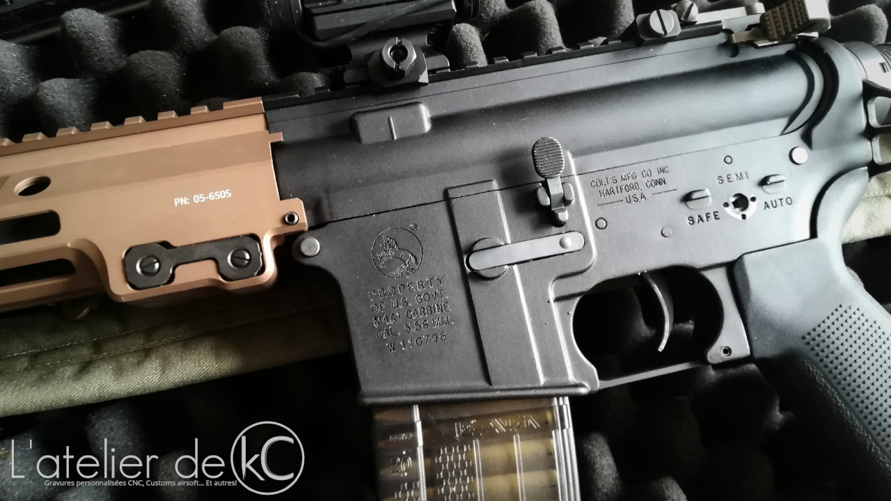 Un article très court pour cette fois, car ce n’ est pas la première fois que je fais ce genre de gravures type Colt sur M4… Mais pour une fois, j’ ai quelques photo du custom complet et terminé à vous montrer!