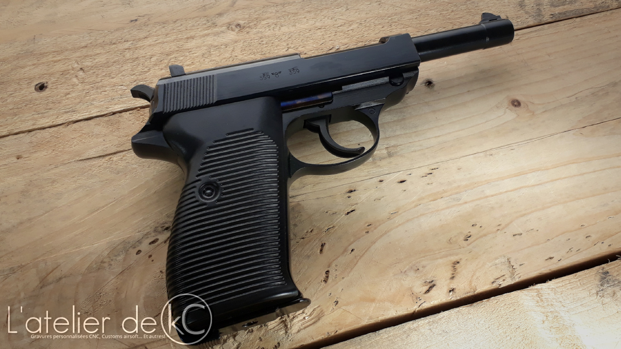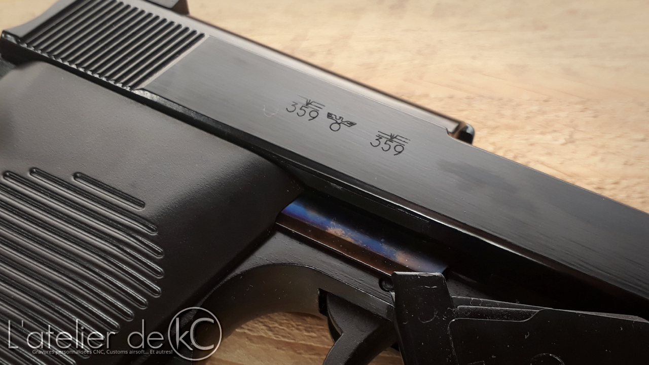Les seules différences seront l’ absence du marquage sous le canon, et un traitement bronzage à froid des gravures pour les noircir.