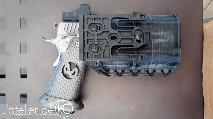 Il y avait bien l’ option du « sur mesure » en Kydex, mais les prix généralement proposés m’ ont un peu refroidis, ainsi que la nécessité d’ envoyer mon jouet pour la prise de ses mensurations…