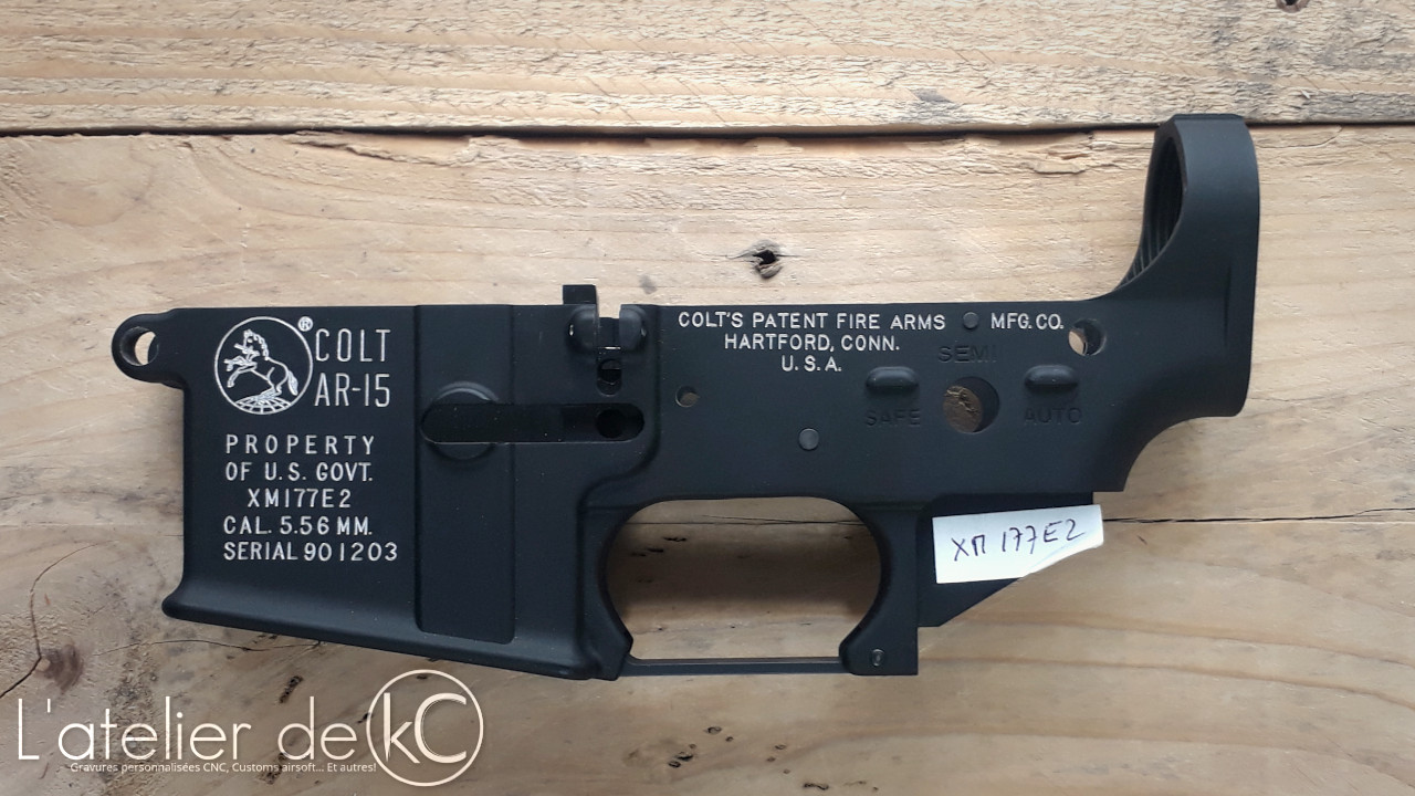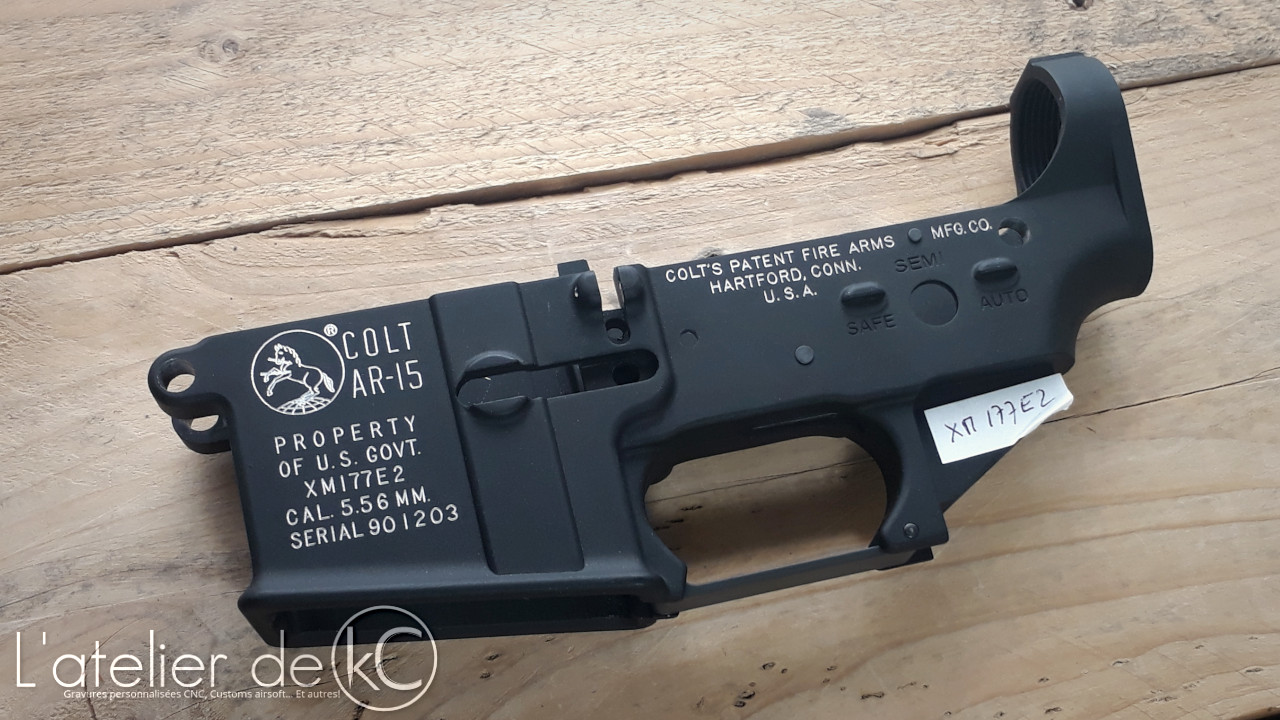 Après le grand frère, le petit frère! Gravure d’ un lower de XM177E2, version GBBR, de chez WE.