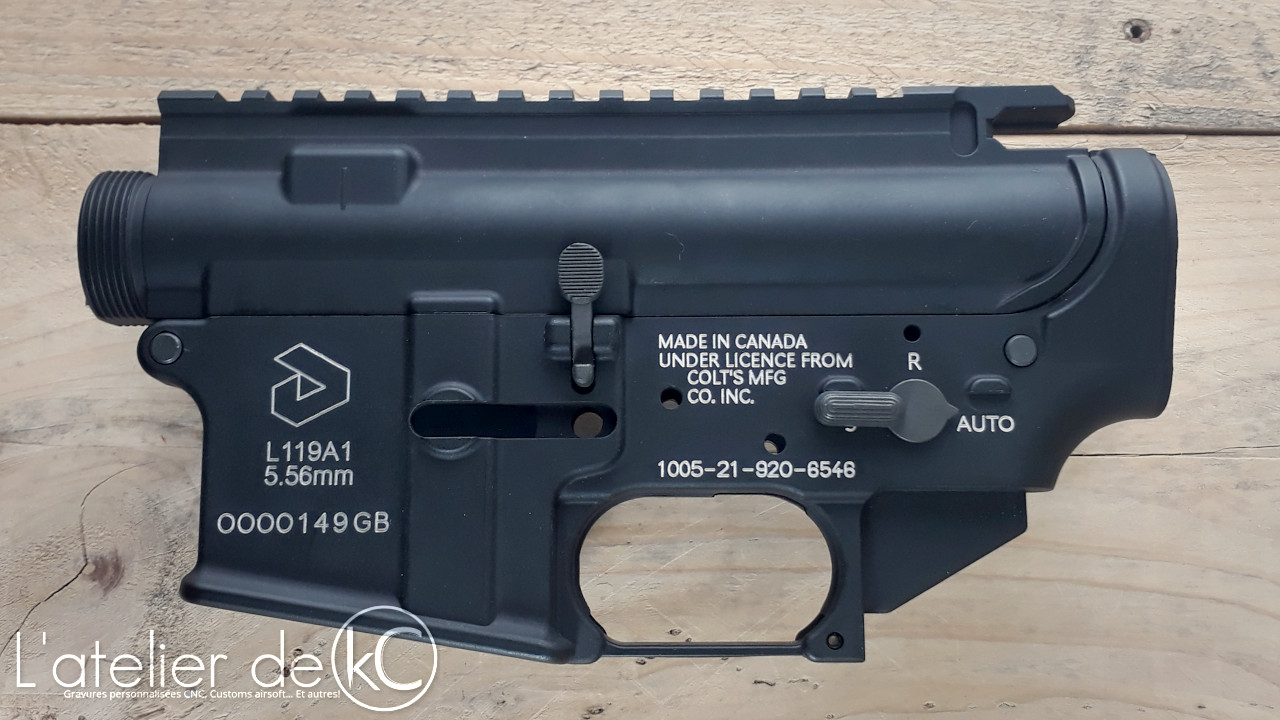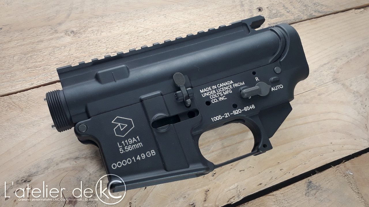 Gravures et usinage d’ un ensemble lower + upper m4 GHK gbbr, pour en faire une réplique de L119A1!
