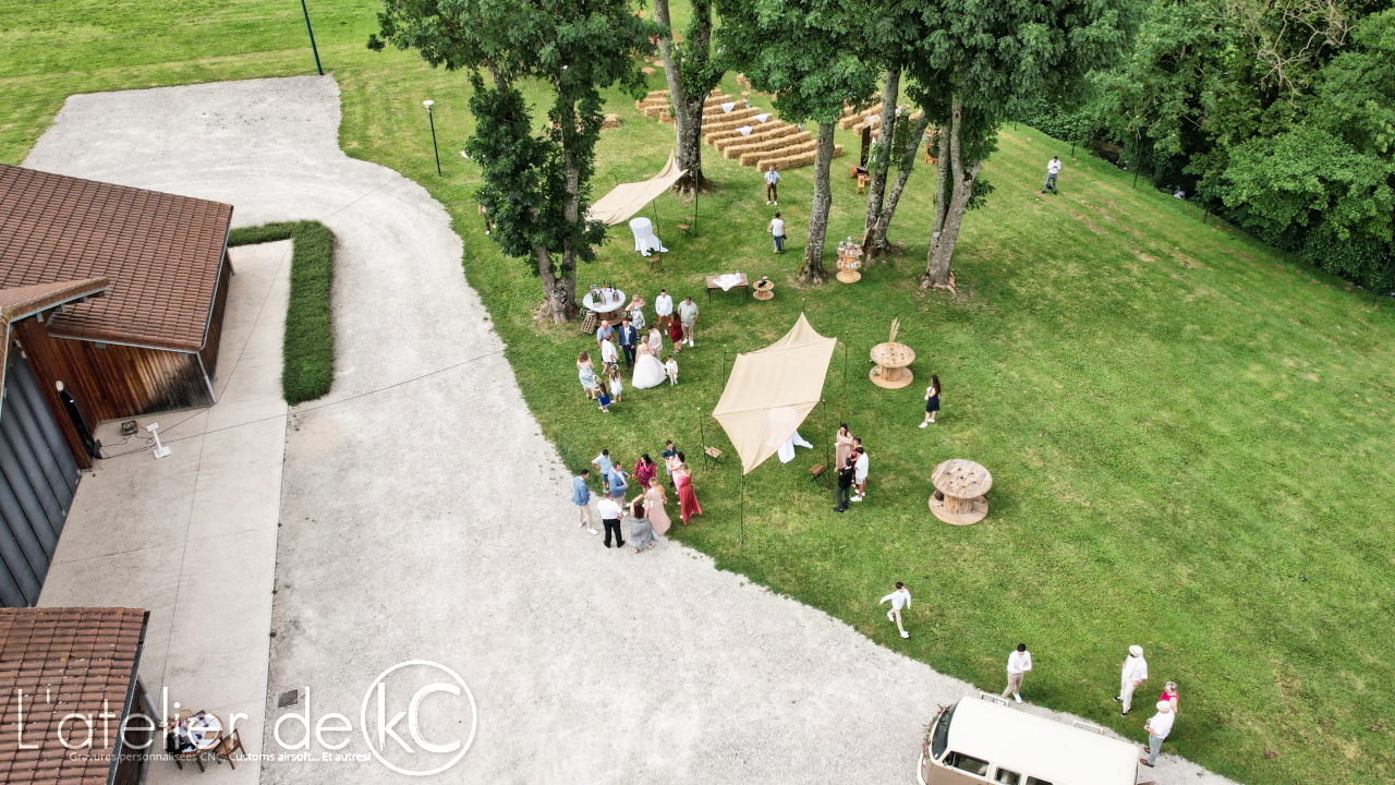 J’ai donc profité du court laps de temps entre l’arrivée des mariés et l’arrivée des invités pour shooter le maximum de plans vidéos et photos. Avant que la présence d’un trop grand nombre de personnes ne rende le vol impossible…
