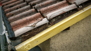 Premières constatations lors de la dépose des rives: des manques d’isolant par endroit, remplacé par des « chips » par les anciens propriétaires… des nids de guêpes en pagaille et des nids de rongeurs/oiseaux? Également quelques tuiles fissurées… Je comprend mieux d’où venait mes soucis d’isolation & infiltrations d’eau!