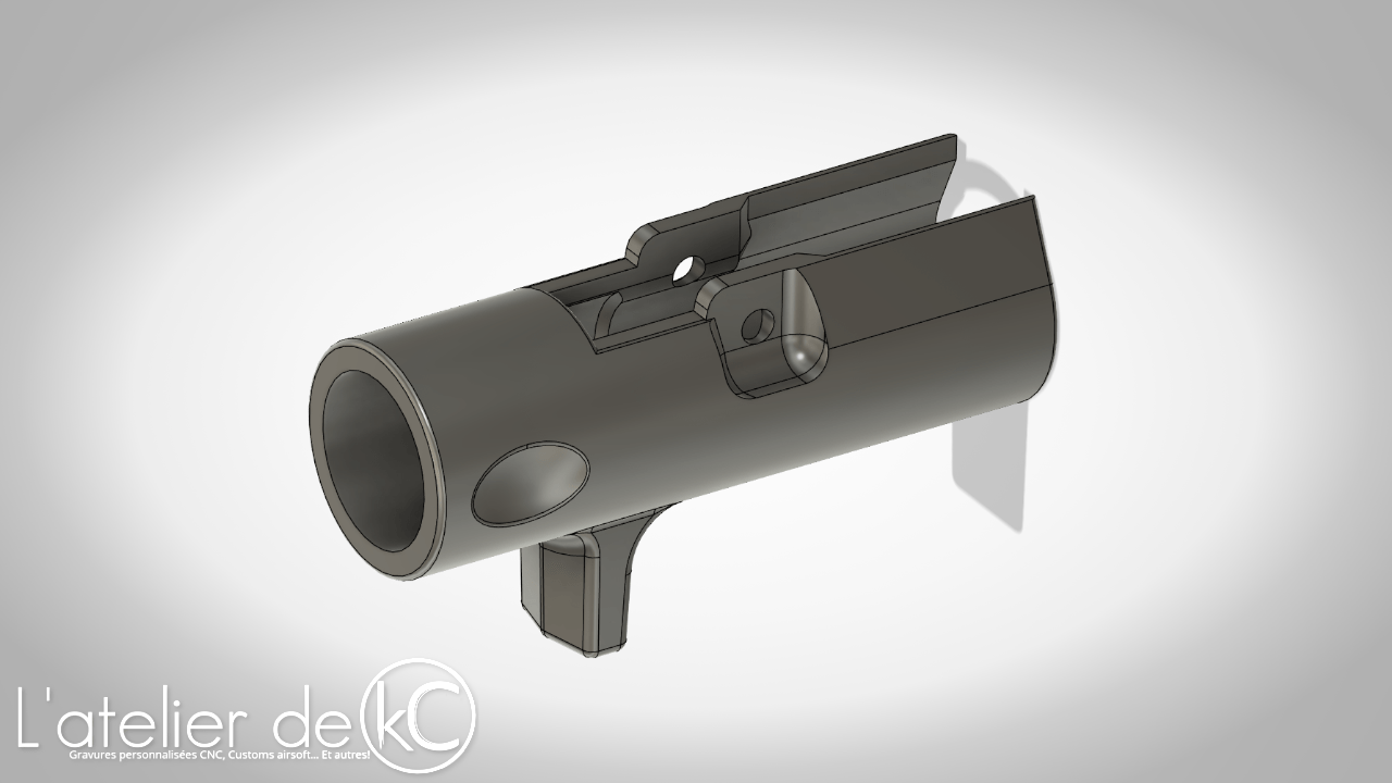 Je modifie toutefois 2 ou 3 détails sur ma conception à l’intérieur du garde-main, afin de simplifier l’impression 3D (ajout de chanfrein pour une impression avec un minimum de supports) et optimiser la solidité (augmentation de l’épaisseur interne à certains endroits)