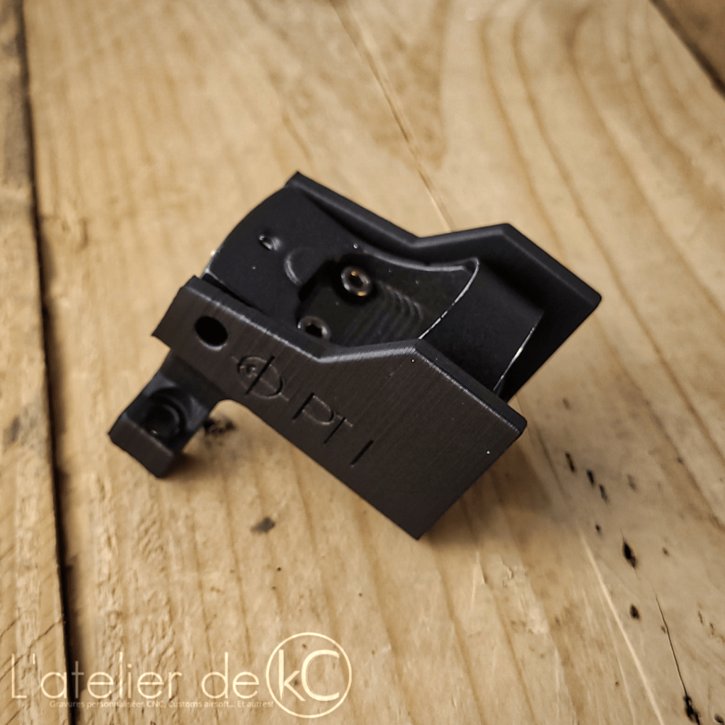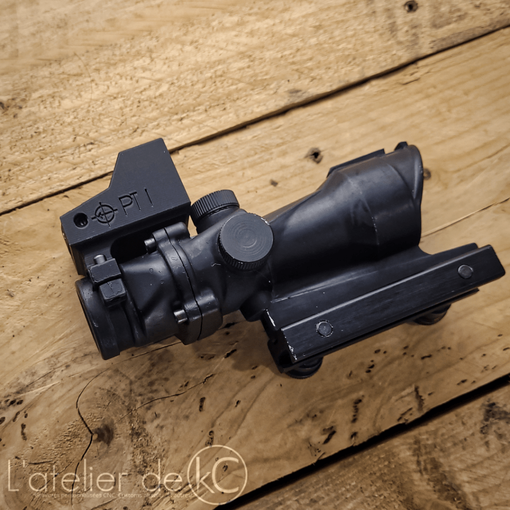 Une fois imprimé, le RMR se monte sur le support grace à ses vis m3.5, et le support se monte sur l’ACOG en lieu et place de l’œilleton de visée.