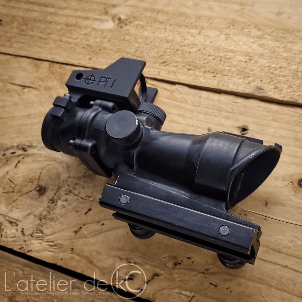 Très peu d’infos disponible sur le web concernant ce montage… hormis quelques rares photos de forces spéciales en Afghanistan affichant ce support sur leurs ACOG. Cela a donc nécessité un gros travail de rétro-conception, uniquement en me basant sur ces rares photos.