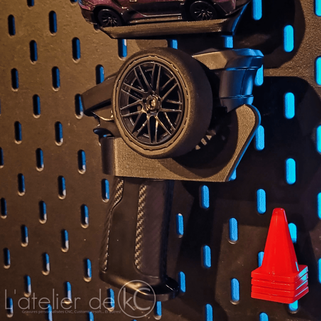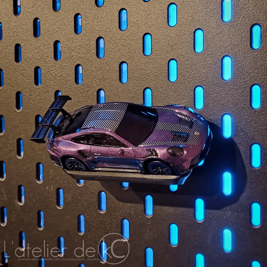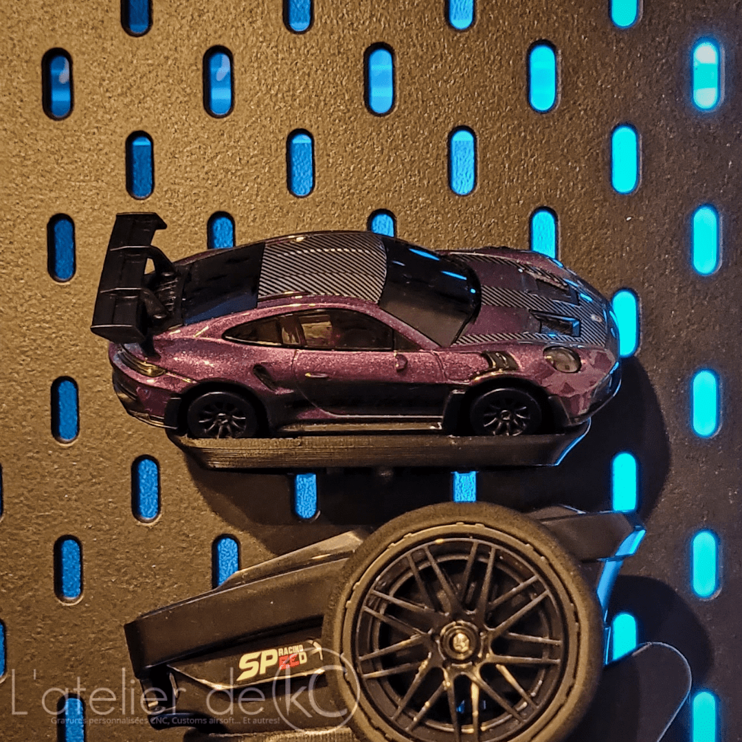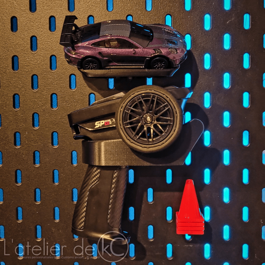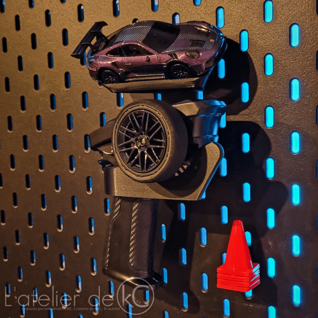 Voici mon support permettant d’exposer ses modĂšles Ă©chelle 1/43, radiocommandĂ© (ou non), sur panneau Skadis Ikea! Et quitte Ă exposer ses modĂšles rĂ©duit, autant en profiter pour ranger/exposer la radiocommande aussi đ