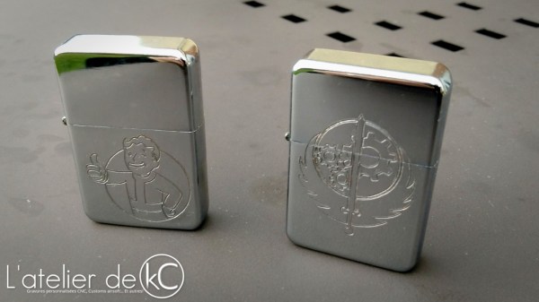 Cette fois-ci on va donc taper dans un alliage de type laiton, avec un traitement de surface qui est certainement un chromage ou une sorte de nickelage. Lire la suite « Gravures sur briquets, theme « Fallout » »