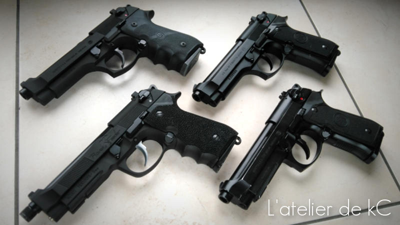 La réplique a été équipée de plaquettes Beretta, d’un outer barrel acier RATech du plus bel effet. La carcasse a reçu une peinture Cerakote et la culasse a finalement été repeinte également pour approcher le rendu « Bruniton » des vrais Beretta.