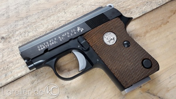 Aujourd’ hui c’ est une réplique assez peu commune (encore une!) qui fait un détour par mon atelier: Une réplique de colt junior .25, de chez WE!