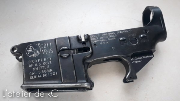Ayant déjà remplacé les gardes mains, la crosse ainsi que la poignée pistolet, il ne me reste plus qu’à effectuer un travail sur le corps. »